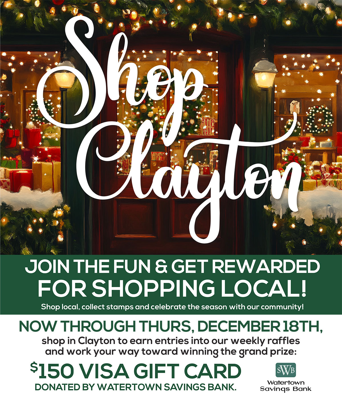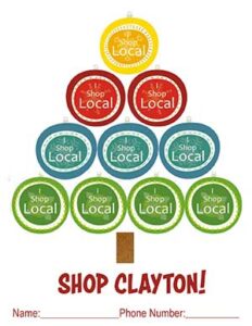 Pick up your stamp card at the Clayton Chamber of Commerce or any participating business. Every purchase you make at these businesses earns you a sticker to fill your card. Once your card is full, drop it off at any