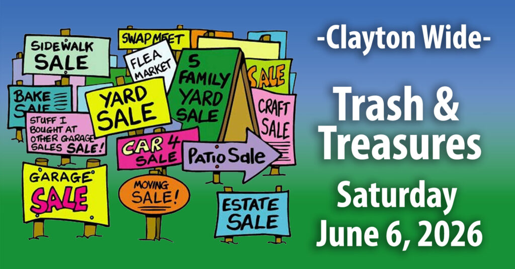 The Clayton Chamber of Commerce invites residents to participate in our springtime Trash & Treasures Day on June 6, 2026